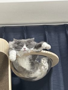 今年3月に新しい家族を迎えました。 我が家のアイドルにゃんこの アールくん(男の子) ラガマフィンという種類のにゃんこの ようですが、かなり大きく育つようでこの先も成長がとっても楽しみです! 動物全般大好きなのですがわ、犬との生活が 多く、にゃんこさんは全くわかりません。 にゃんこさんに詳しい利用者様や、 職場スタッフにもアドバイス頂きながら 現在生後7ヶ月3.5kgまで成長致しました。 洗面所のボールで寝る、高い所からカーテンを開ける、サイズ違いの場所に頭を突っ込む、などなど、毎日とんでもない行動ですごく笑わせてくれています!笑 トイレ掃除をしていると、背中をちょいちょい 叩いて、様子伺ってくれたり、頼もしい家族です。 これからもブログに載せていきますので 成長を見守って頂けたらこれ幸いです!!